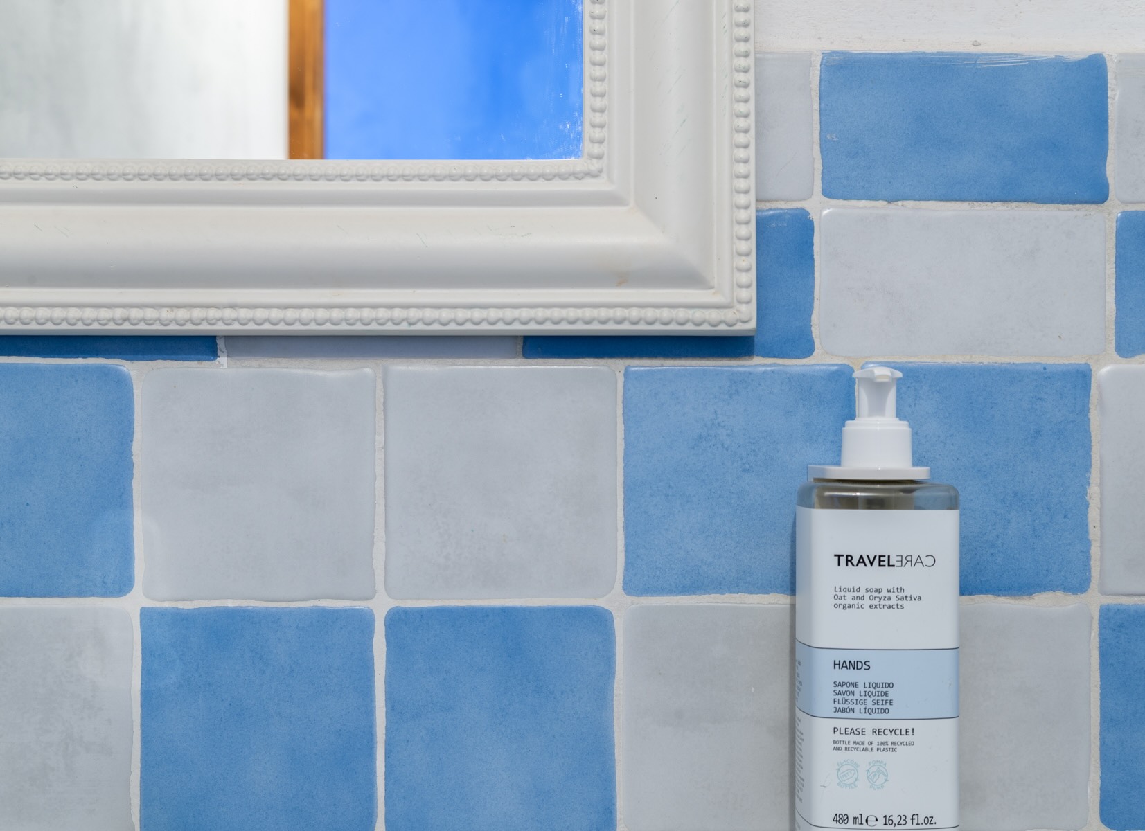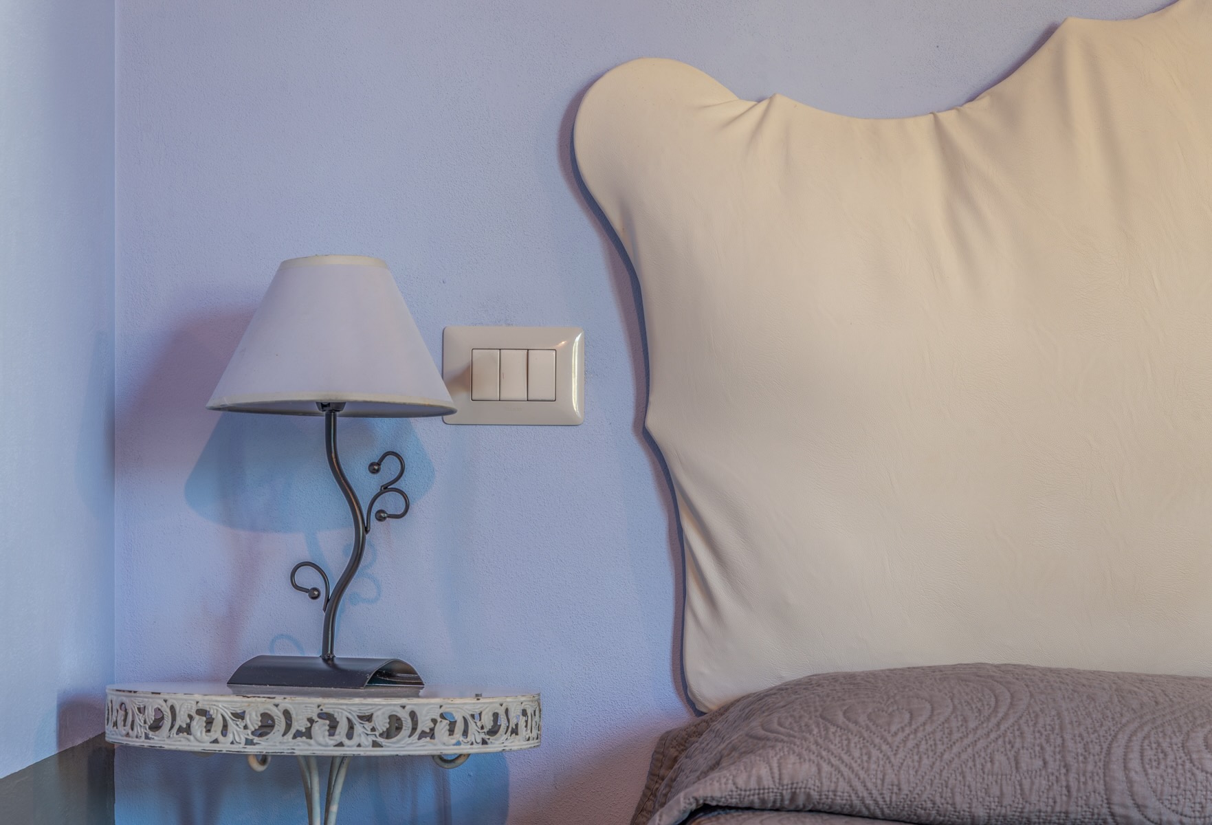 Nel toni del color pervinca, che mescola l'azzurro ed il viola.