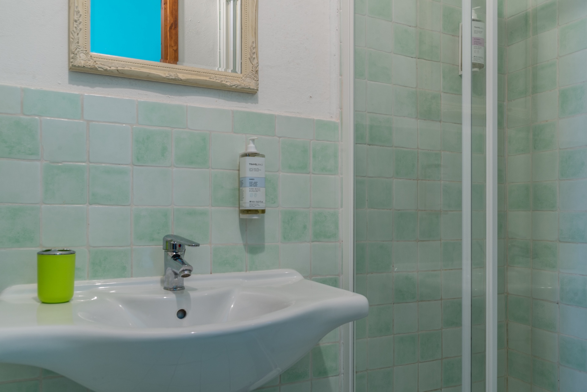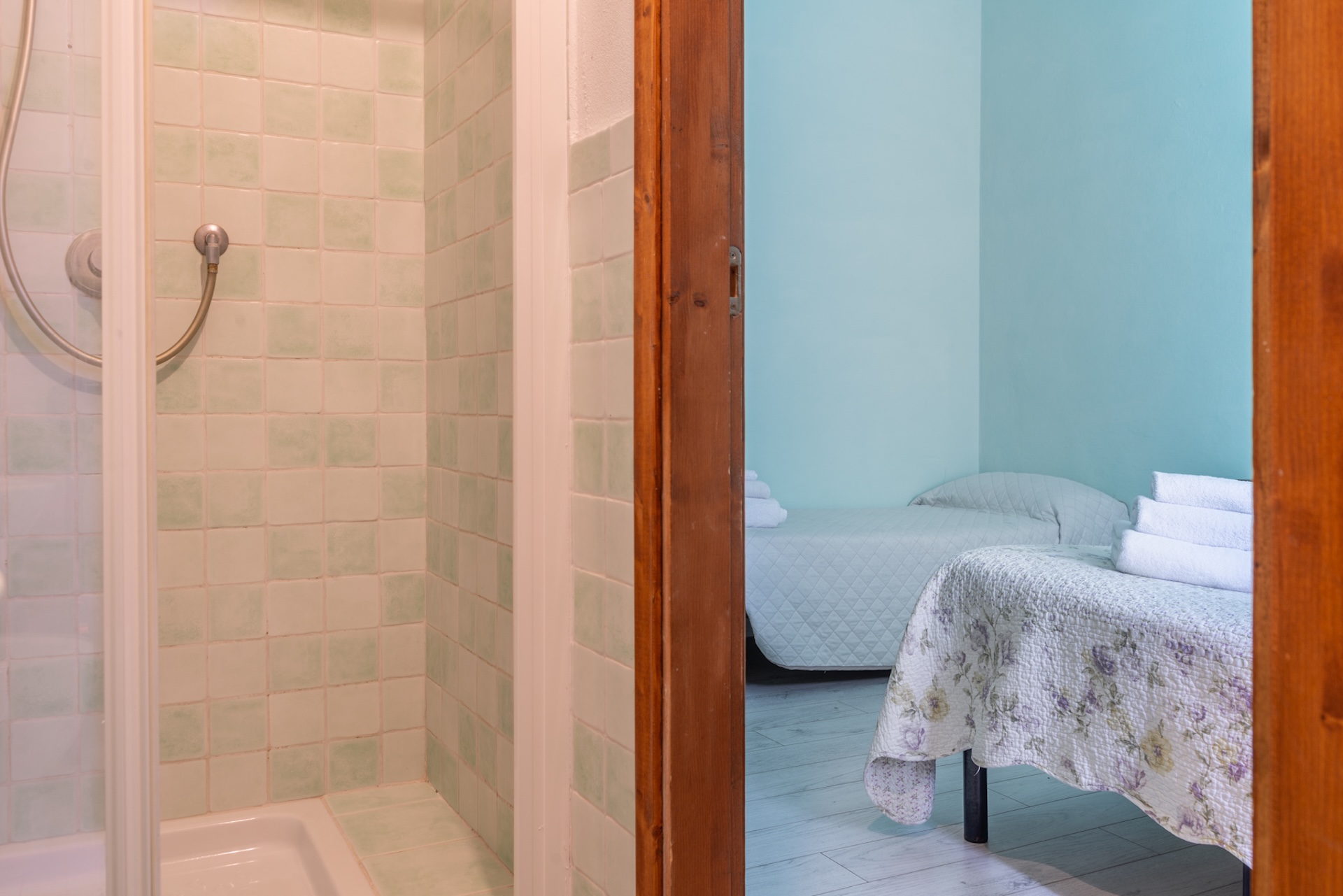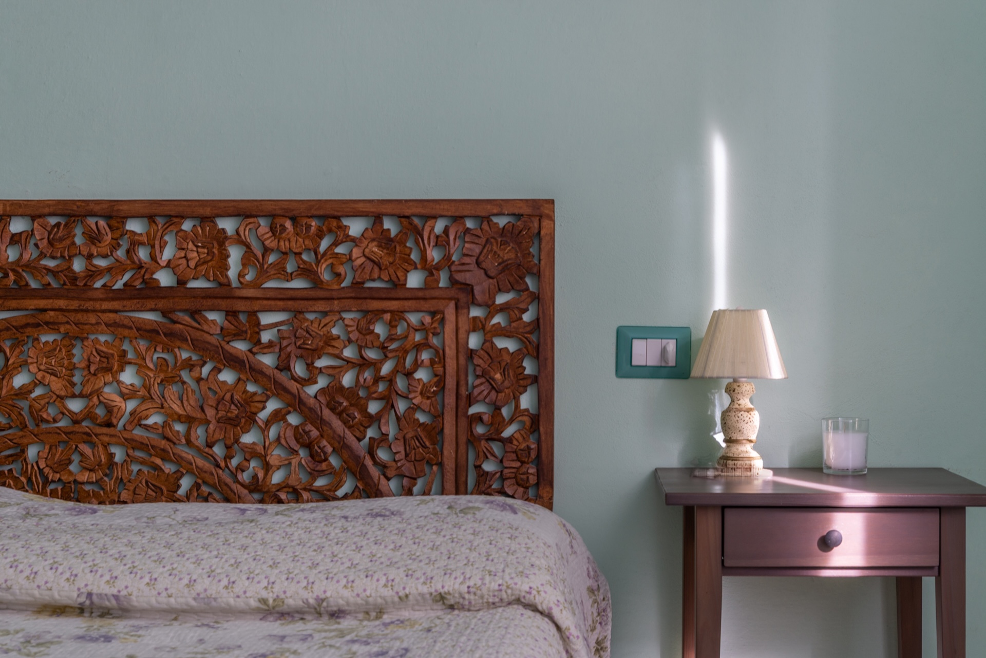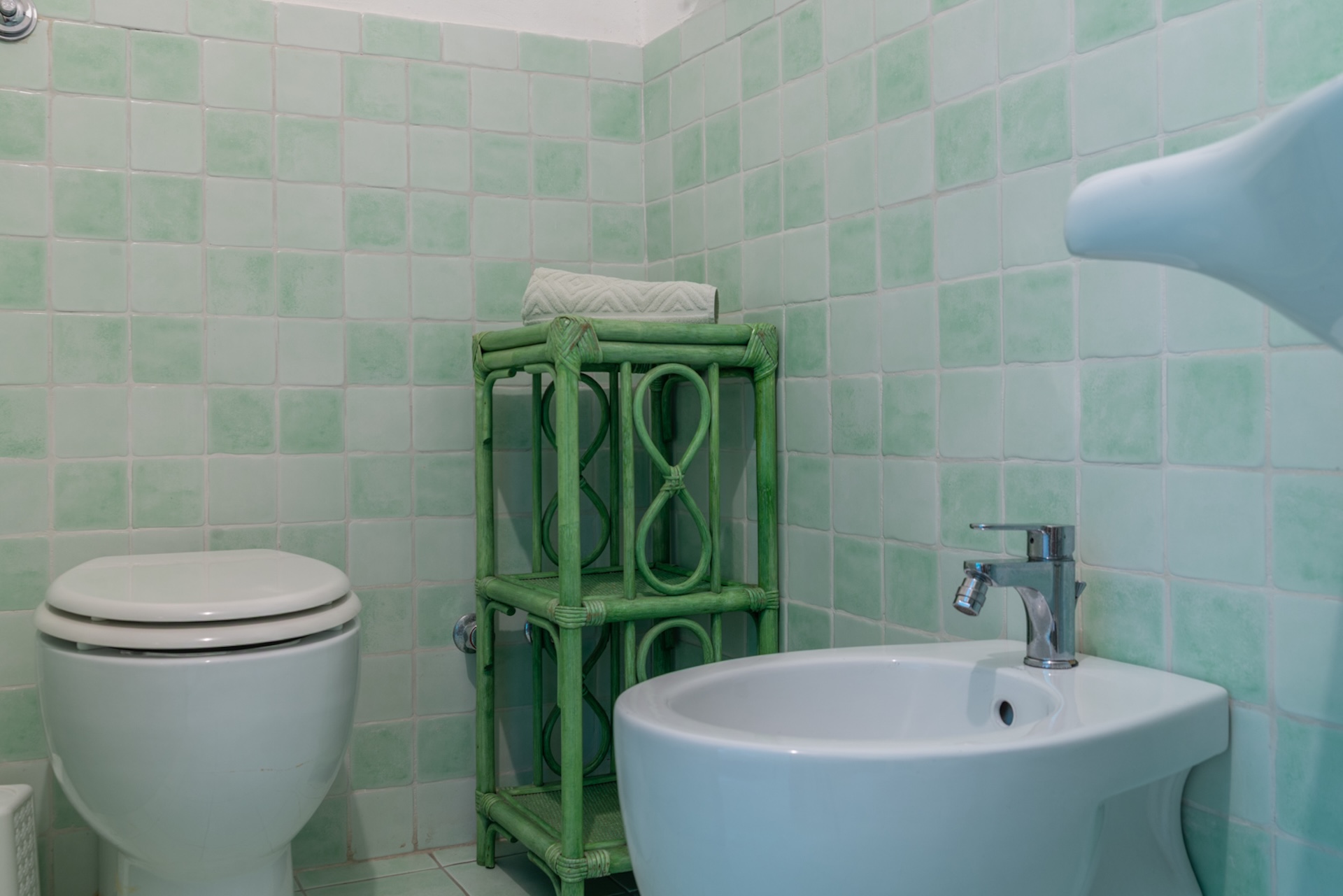 Il colore predominate è il verde ed è arredata con mobili antichi sul color marrone.