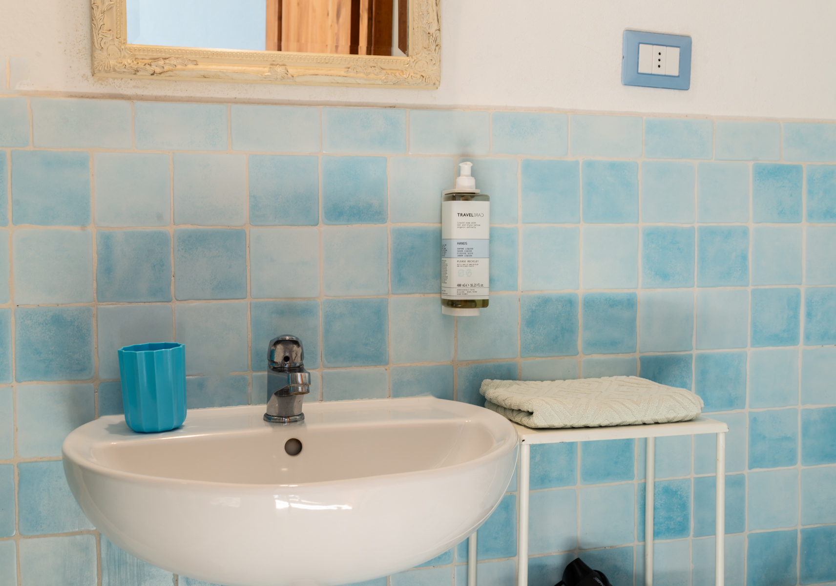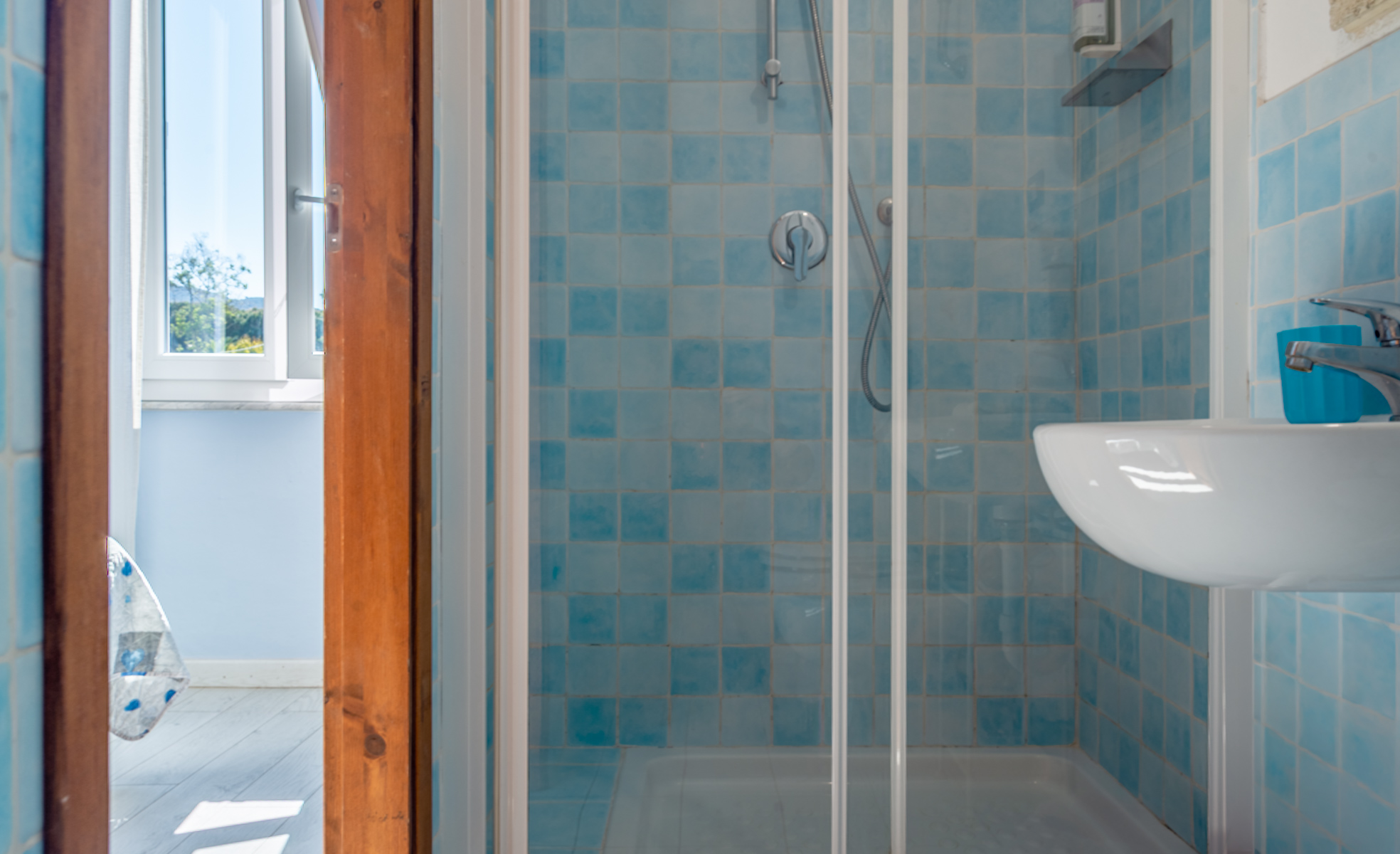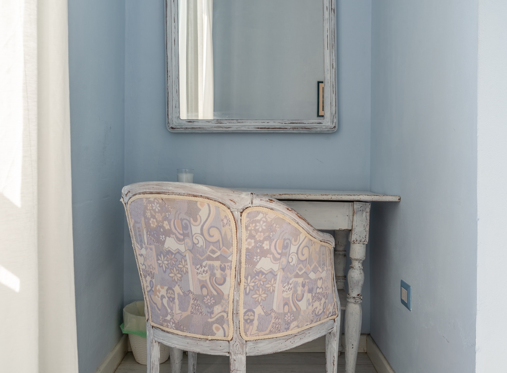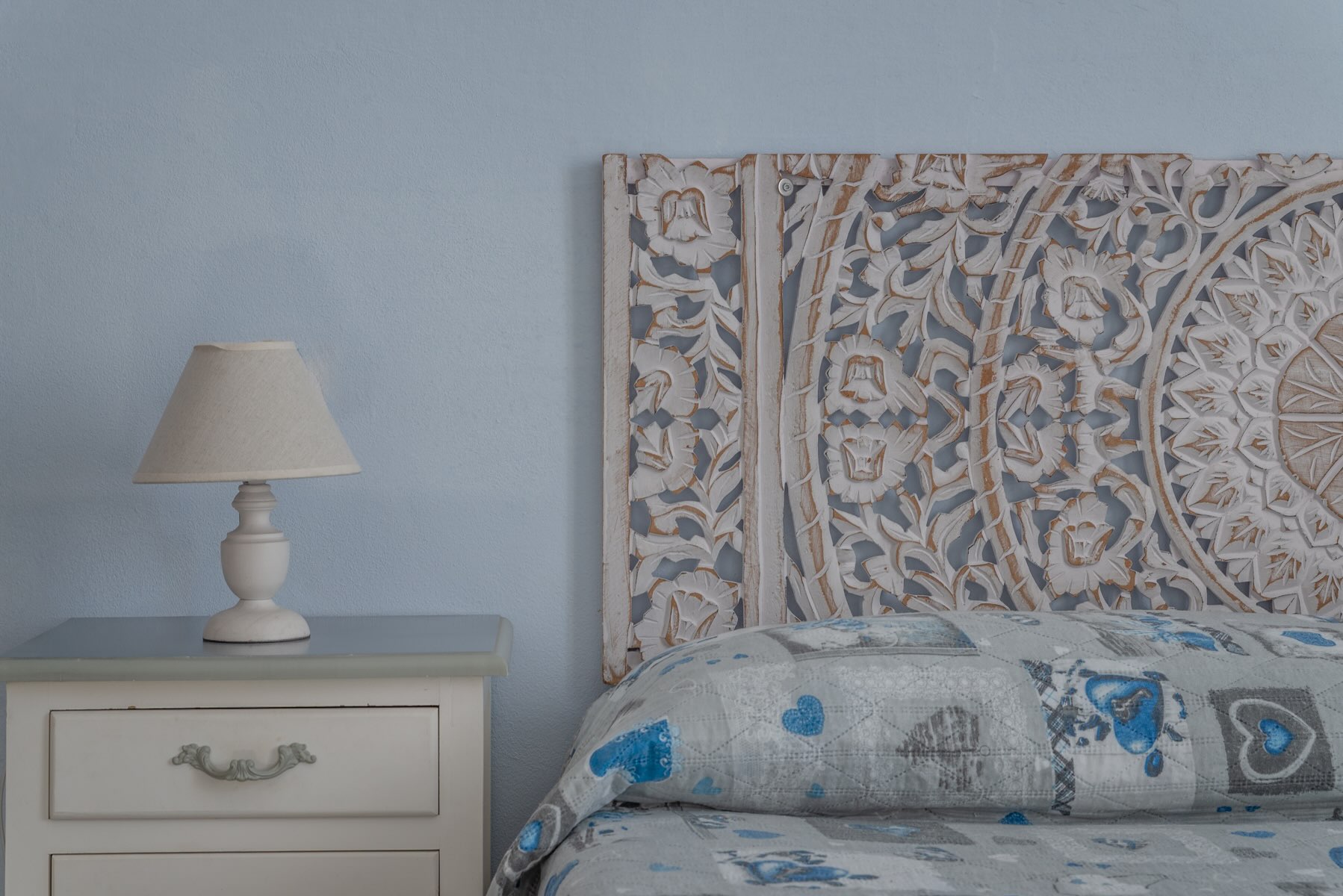 Im Shabby Chic Stil eingerichtet, in frischer, entspannender, hellblauer Farbe.